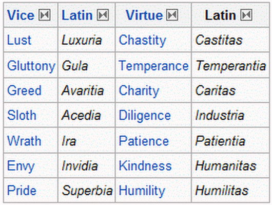What are the Latin Names for the 7 Deadly Sins?