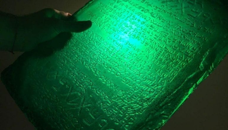 Although the engraved text was large enough read even from afar, it was written in a language that I knew that even Miriam did not understand. (If YOU want to know more, do some research — look for references on any of the following: The Emerald Tablet, or The Tabula Smaragdina, or The Secret of Hermes. See, I do give up some secrets).