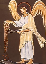 Revelation Chapter 10 is actually considered a kind of ‘interlude’ as the people of earth are given a slight reprieve from all the catastrophes caused by the breaking of the Seven Seals and the blowing of the Seven Trumpets. During this break in the action, John of Patmos is given the little scroll by the mighty angel – as instructed, John eats the ‘bitter’ scroll. This will become a source from which he can prophesy what he knows to all peoples and all nations.