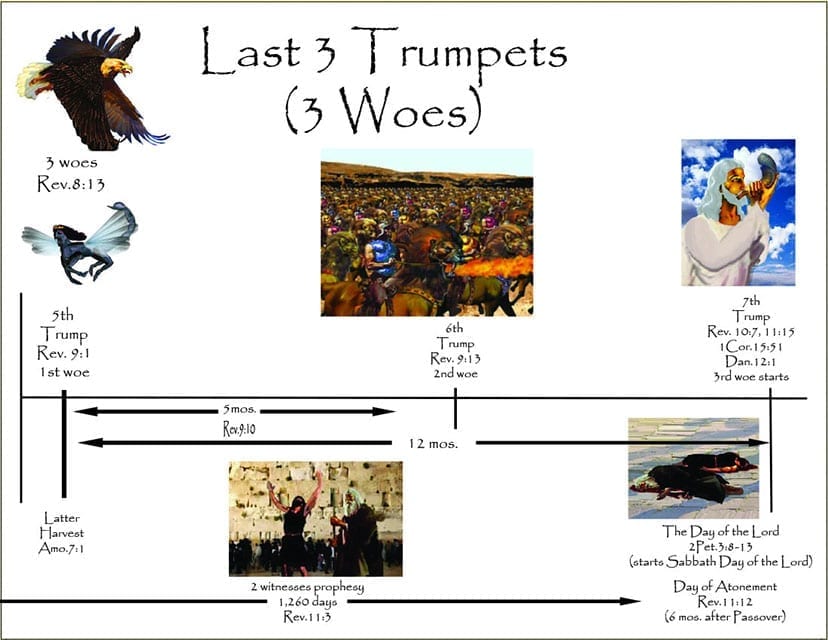 Trumpets 5, 6, and 7 also signal the coming of the 3 Woes.