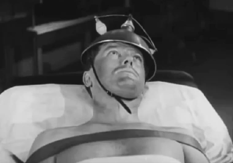 Seeing Alan also looking around, Bates also smiled, “Ah, you’re noticed our work stations. You’re probably wondering why the sides are mismatched? It’s simple really — whenever Dr. Flipflop has one of my subjects exposed on the cutting board, with their blood flowing freely – and it always does – well, I just can’t stand for him to lose even a drop. But with our tables crafted in this manner, we can ensure that Dr. Flipflop ‘s participant will have their life-force flow down the slope of the table, to run off into tiny troughs waiting below to collect that precious liquid. Clever, huh?”