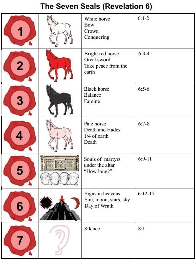 NOTE: The relationship between the 7 Seals, 7 Trumpets, 7 Bowls, and 3 Woes is explored in detail in the feature article.